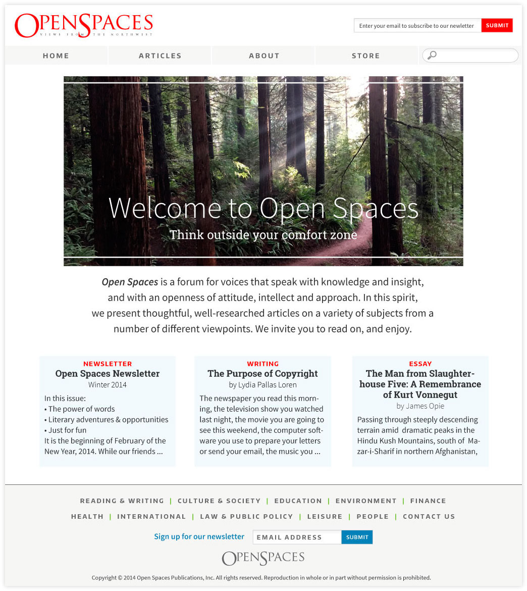 As is the nature of websites, the look has changed since it was first created, but Open Spaces: Views from the Northwest continues to engage readers online.